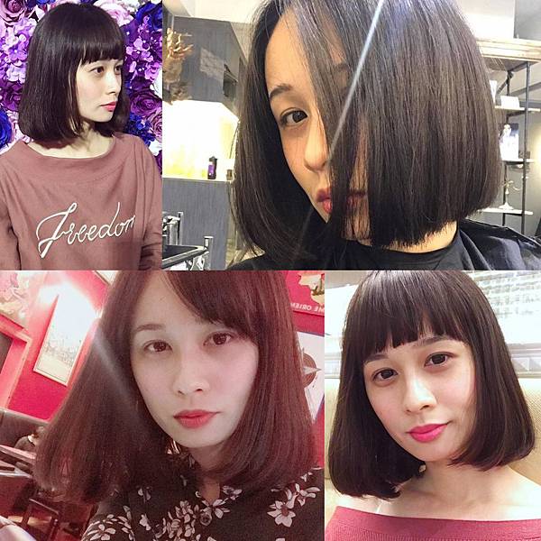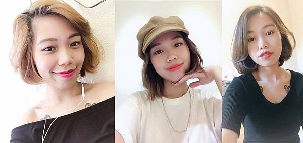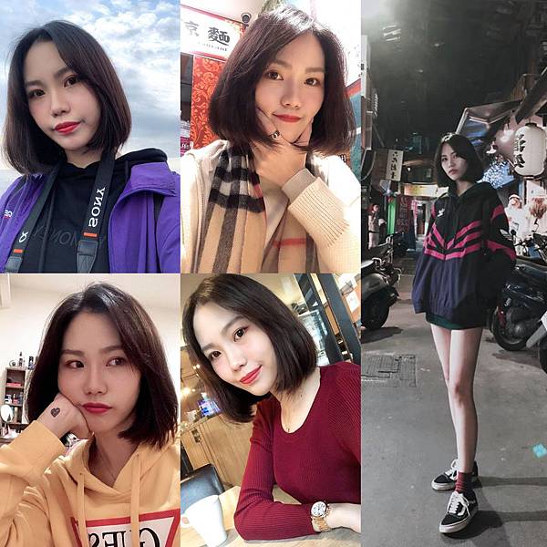 最後放上一張從耳下慢慢留到快碰肩的妹子,換了多次髮色、改變了很多瀏海風格,再加上女人的衣櫃總是百百種衣服,泥砍看泥砍看~光是一個短髮,就可以72變。